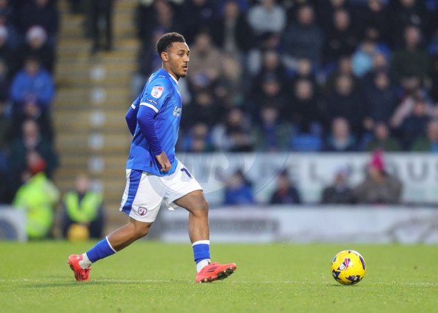 Lewis Gordon of Chesterfield passes the ball during the Sky Bet League 2 match Chesterfield vs Barnet at SMH Group Stadium, Chesterfield, United Kingdom, 13th December 2025, Credit:Richard Bierton/News Images / Avalon
