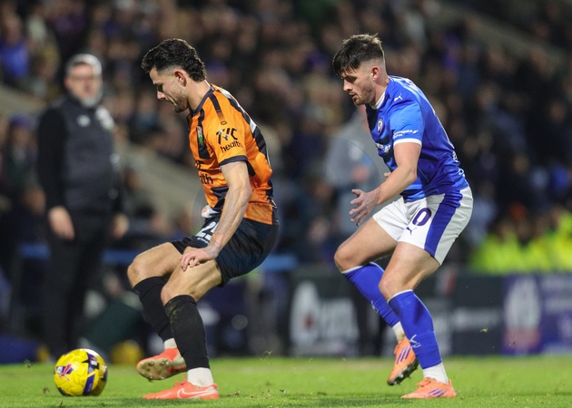 Nikola Tavares of Barnet holds off Lee Bonis of Chesterfield during the Sky Bet League 2 match Chesterfield vs Barnet at SMH Group Stadium, Chesterfield, United Kingdom, 13th December 2025, Credit:Richard Bierton/News Images / Avalon