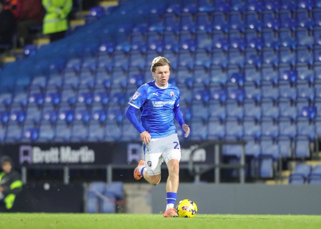James Berry of Chesterfield makes a run with the ball during the Sky Bet League 2 match Chesterfield vs Barnet at SMH Group Stadium, Chesterfield, United Kingdom, 13th December 2025, Credit:Richard Bierton/News Images / Avalon