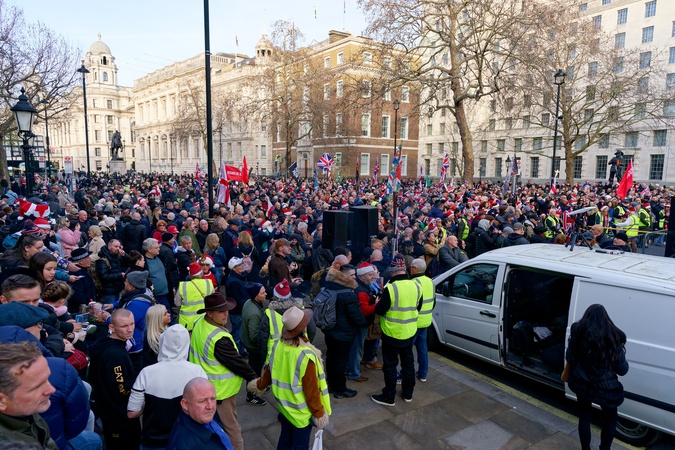 The policital group Unite the Kingdom and Tommy Robinson Christmas event in Whitehall attracted around 1000 people. There was a small counter protest by Anti-racism group Stand Up To Racism., Credit:Aldo Ciarrocchi / Avalon