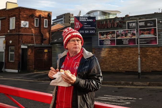 A fan having a bite to eat during the Premier League match Nottingham Forest vs Tottenham Hotspur at City Ground, Nottingham, United Kingdom, 14th December 2025, Credit:Mark Cosgrove/News Images / Avalon