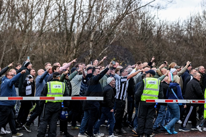 Newcastle fans are escorted to the away end by police during the Premier League match Sunderland vs Newcastle United at Stadium Of Light, Sunderland, United Kingdom, 14th December 2025, Credit:Ae Cosgrove/News Images / Avalon