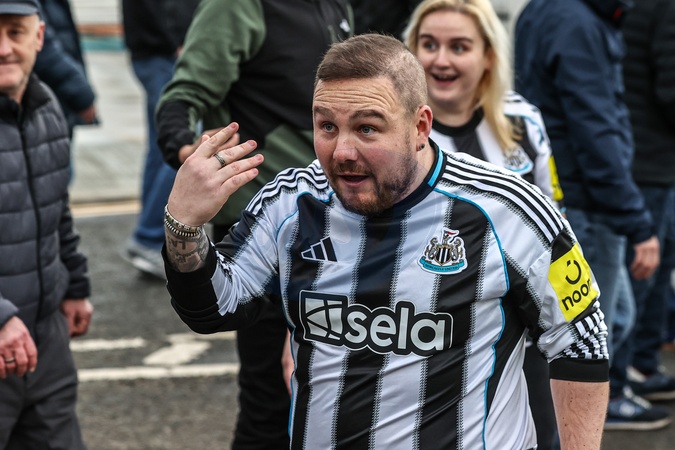 A Newcastle fan comes face to face with the Sunderland fans and is pushed away by police during the Premier League match Sunderland vs Newcastle United at Stadium Of Light, Sunderland, United Kingdom, 14th December 2025, Credit:Ae Cosgrove/News Images / Avalon