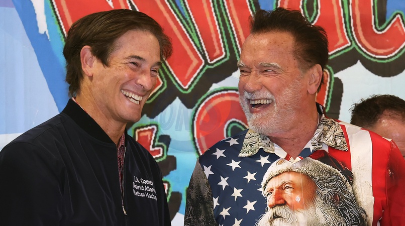 13 December 2025 . Los Angeles, California - District Attorney Nathan Hochman, Arnold Schwarzenegger, Sugar Ray Leonard, At THE 44th Annual "Miracle on 1st Street” Christmas Toy Giveaway held at Hollenbeck Youth Center in Los Angeles., Credit:Sadou Faye / Avalon