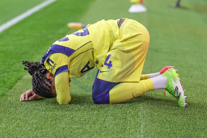 Djed Spence of Tottenham Hotspur after being fouled by Nicolo Savona of Nottingham Forest during the Premier League match Nottingham Forest vs Tottenham Hotspur at City Ground, Nottingham, United Kingdom, 14th December 2025, Credit:Mark Cosgrove/News Images / Avalon