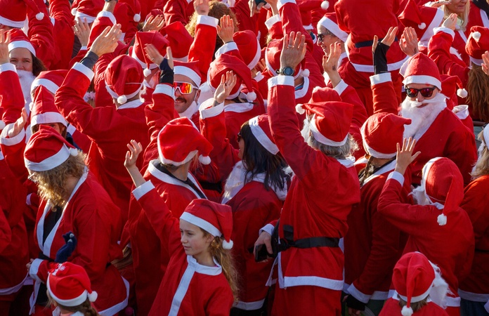 The Teens Unite "Santa Dash" sees over 400 santas run between Broxbourne and Hoddesdon in support of the charity. Teens Unite is the only organisation in the UK to provide ongoing support to 13-24 year old's during and after cancer, Hertfordshire, UK, 14 December 2025, Credit:Alex Day / Avalon