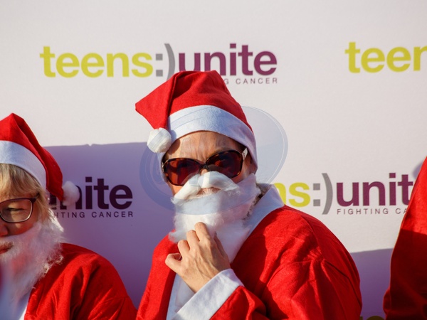 The Teens Unite "Santa Dash" sees over 400 santas run between Broxbourne and Hoddesdon in support of the charity. Teens Unite is the only organisation in the UK to provide ongoing support to 13-24 year old's during and after cancer, Hertfordshire, UK, 14 December 2025, Credit:Alex Day / Avalon