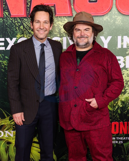LOS ANGELES, CALIFORNIA, USA - DECEMBER 13: American actor, producer, and screenwriter Paul Rudd and American actor, comedian and musician Jack Black arrive at the World Premiere Of Columbia Pictures' 'Anaconda' held at The United Theater on Broadway at STILE Downtown Los Angeles by Kasa on December 13, 2025 in Los Angeles, California, United States., Credit:Xavier Collin / Avalon