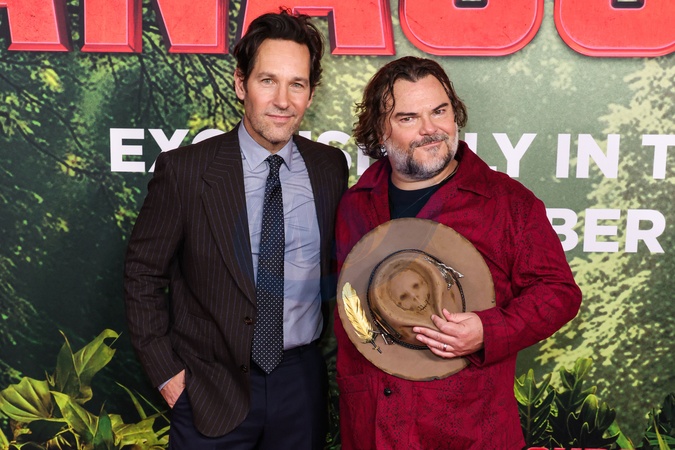 LOS ANGELES, CALIFORNIA, USA - DECEMBER 13: American actor, producer, and screenwriter Paul Rudd and American actor, comedian and musician Jack Black arrive at the World Premiere Of Columbia Pictures' 'Anaconda' held at The United Theater on Broadway at STILE Downtown Los Angeles by Kasa on December 13, 2025 in Los Angeles, California, United States., Credit:Xavier Collin / Avalon