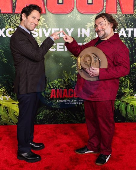 LOS ANGELES, CALIFORNIA, USA - DECEMBER 13: American actor, producer, and screenwriter Paul Rudd and American actor, comedian and musician Jack Black arrive at the World Premiere Of Columbia Pictures' 'Anaconda' held at The United Theater on Broadway at STILE Downtown Los Angeles by Kasa on December 13, 2025 in Los Angeles, California, United States., Credit:Xavier Collin / Avalon