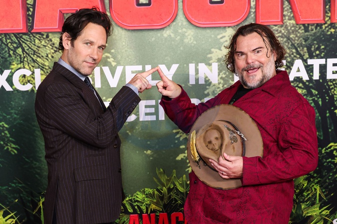 LOS ANGELES, CALIFORNIA, USA - DECEMBER 13: American actor, producer, and screenwriter Paul Rudd and American actor, comedian and musician Jack Black arrive at the World Premiere Of Columbia Pictures' 'Anaconda' held at The United Theater on Broadway at STILE Downtown Los Angeles by Kasa on December 13, 2025 in Los Angeles, California, United States., Credit:Xavier Collin / Avalon
