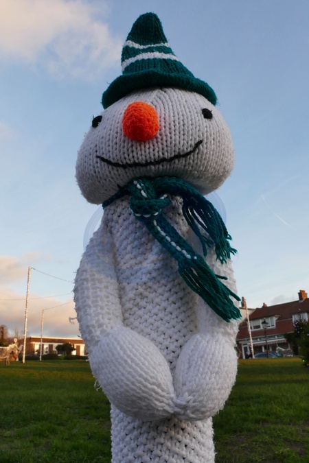 Festive bollard toppers of snowmen decorated the village green in time for Christmas., Credit:Geoffrey Swaine / Avalon