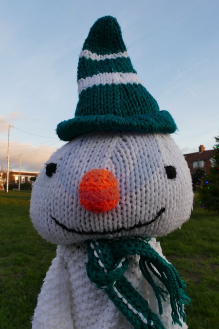 Festive bollard toppers of snowmen decorated the village green in time for Christmas., Credit:Geoffrey Swaine / Avalon