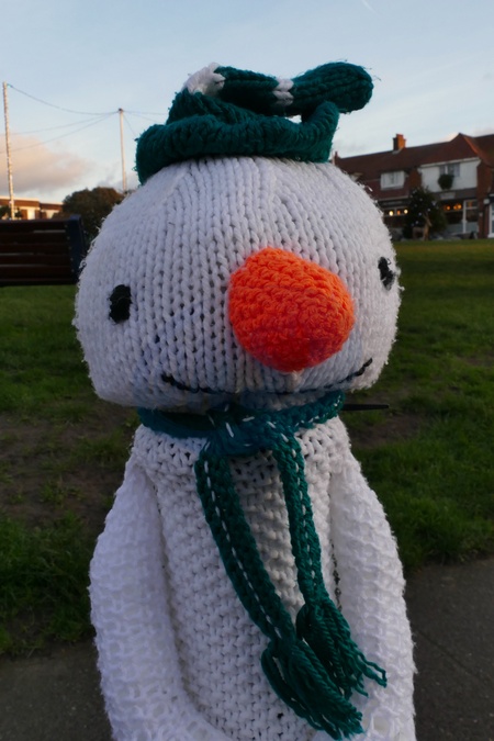 Festive bollard toppers of snowmen decorated the village green in time for Christmas., Credit:Geoffrey Swaine / Avalon