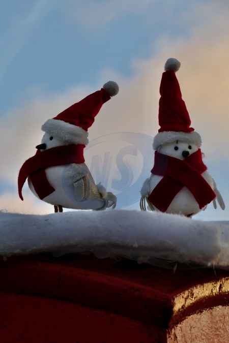 Festive post box toppers of robins decorated the village green in time for Christmas., Credit:Geoffrey Swaine / Avalon