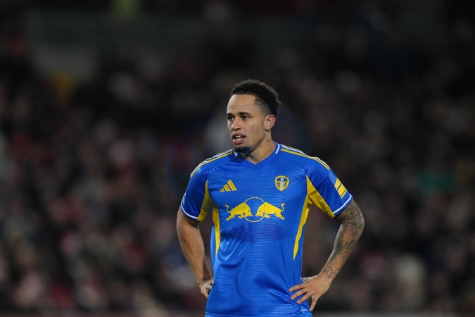 Noah Okafor of Leeds United during the Premier League match Brentford vs Leeds United at The Gtech Community Stadium, London, United Kingdom, 14th December 2025, Credit:Harvey Murphy/News Images / Avalon
