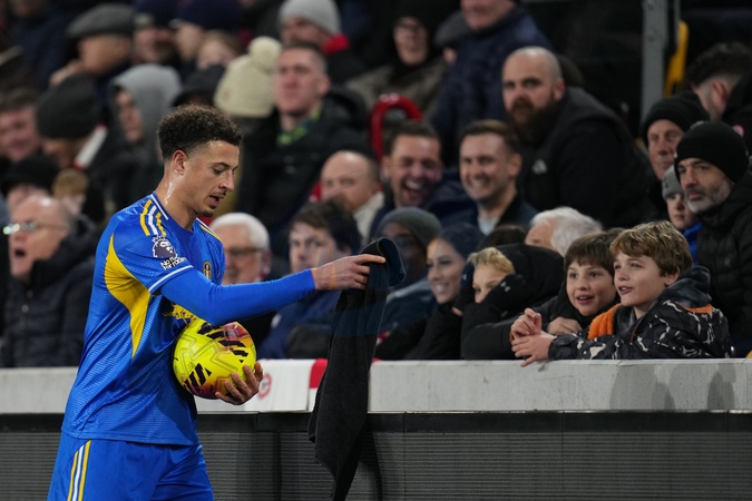 Ethan Ampadu of Leeds United cleans ball with towel during the Premier League match Brentford vs Leeds United at The Gtech Community Stadium, London, United Kingdom, 14th December 2025, Credit:Harvey Murphy/News Images / Avalon