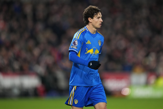 Brenden Aaronson of Leeds United during the Premier League match Brentford vs Leeds United at The Gtech Community Stadium, London, United Kingdom, 14th December 2025, Credit:Harvey Murphy/News Images / Avalon