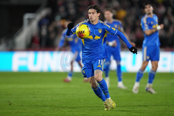 Brenden Aaronson of Leeds United on the ball during the Premier League match Brentford vs Leeds United at The Gtech Community Stadium, London, United Kingdom, 14th December 2025, Credit:Harvey Murphy/News Images / Avalon