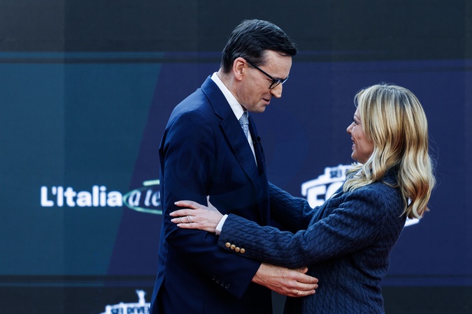 Atreju 2025 Fratelli d'Italia party, Final day. Pictured are Mateusz Morawiecki, President of the ECR party, and the Prime Minister Giorgia Meloni. . Rome, Italy 14 december 2025, Credit:Francesco Fotia / Avalon