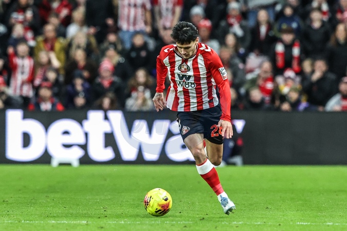 Enzo Le Fee of Sunderland breaks with the ball during the Premier League match Sunderland vs Newcastle United at Stadium Of Light, Sunderland, United Kingdom, 14th December 2025, Credit:Ae Cosgrove/News Images / Avalon