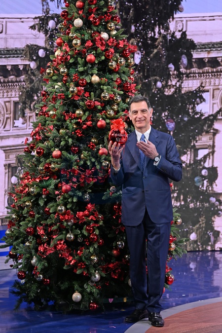 Rai 1 In the studio on the television program 1mattina News with the Christmas Tree