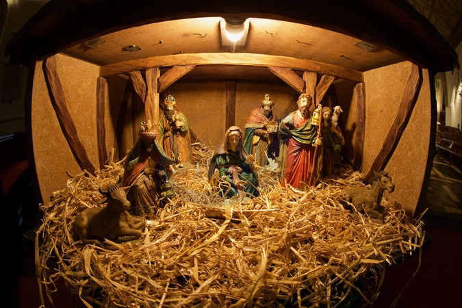 A traditional nativity scene in St. Andrews Church. The traditional nativity story tells of Mary and Joseph traveling to Bethlehem for a Roman census, where no room was available at the inn, so Jesus was born in a stable and laid in a manger. Shepherds, guided by angels, and later, Wise Men (Magi) following a star, visited the baby, bringing gifts like gold, frankincense, and myrrh, while Joseph was warned in dreams to flee to Egypt to escape King Herod's jealousy. The traditional nativity scene's history begins with St. Francis of Assisi staging the first living nativity in Greccio, Italy, in 1223, using real people and animals to convey the humility of Christ's birth, a practice that spread quickly. It evolved from live enactments to static displays with figures, Credit:Geoffrey Swaine / Avalon