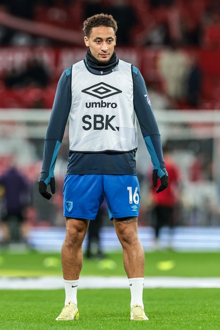 Marcus Tavernier of Bournemouth in the pregame warmup session during the Premier League match Manchester United vs Bournemouth at Old Trafford, Manchester, United Kingdom, 15th December 2025, Credit:Mark Cosgrove/News Images / Avalon
