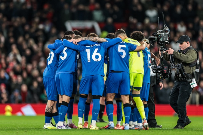 Bournemouth have a team huddle during the Premier League match Manchester United vs Bournemouth at Old Trafford, Manchester, United Kingdom, 15th December 2025, Credit:Mark Cosgrove/News Images / Avalon