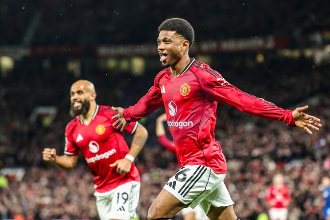 Amad Diallo of Manchester Untied celebrates his goal to make it 1-0 during the Premier League match Manchester United vs Bournemouth at Old Trafford, Manchester, United Kingdom, 15th December 2025, Credit:Mark Cosgrove/News Images / Avalon