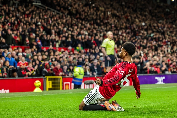 Amad Diallo of Manchester Untied celebrates his goal to make it 1-0 during the Premier League match Manchester United vs Bournemouth at Old Trafford, Manchester, United Kingdom, 15th December 2025, Credit:Mark Cosgrove/News Images / Avalon