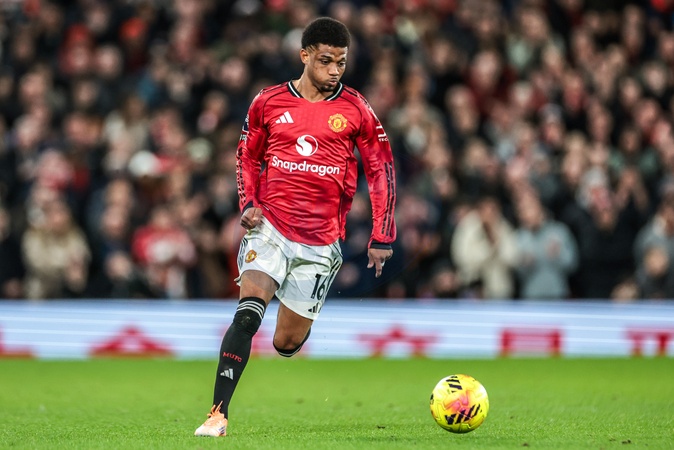 Amad Diallo of Manchester Untied breaks with the ball during the Premier League match Manchester United vs Bournemouth at Old Trafford, Manchester, United Kingdom, 15th December 2025, Credit:Mark Cosgrove/News Images / Avalon