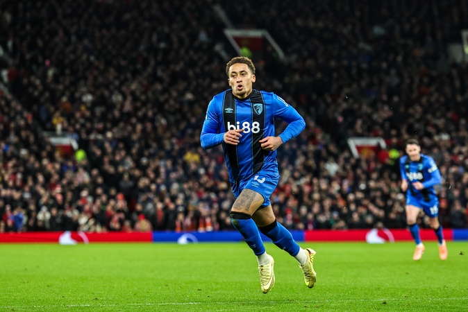 Marcus Tavernier of Bournemouth celebrates his goal to make it 2-3 during the Premier League match Manchester United vs Bournemouth at Old Trafford, Manchester, United Kingdom, 15th December 2025, Credit:Mark Cosgrove/News Images / Avalon