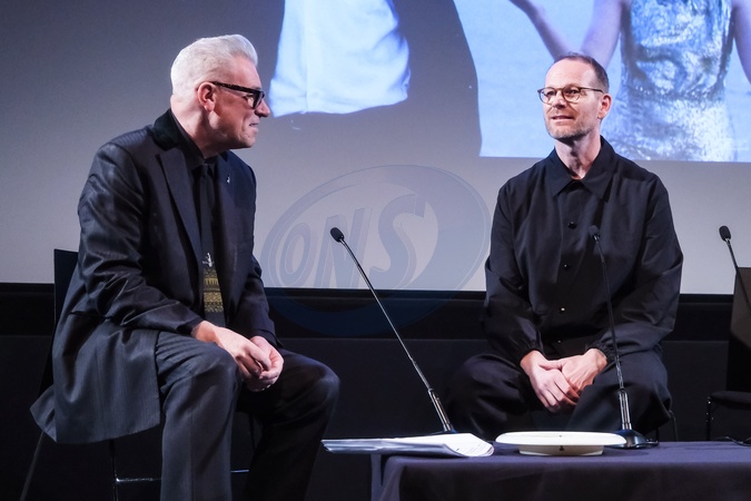 Mark Kermode and Joachim Trier on stage during Mark Kermode in 3D on Monday 15 December 2025