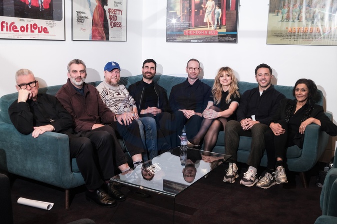 Mark Kermode, James Griffiths, Tim Key, Brett Goldstein, Joachim Trier, Imogen Poots, William Bridges and Meera Syal backstage before Mark Kermode in 3D on Monday 15 December 2025 at BFI Southbank, London. ., Credit:Julie Edwards / Avalon
