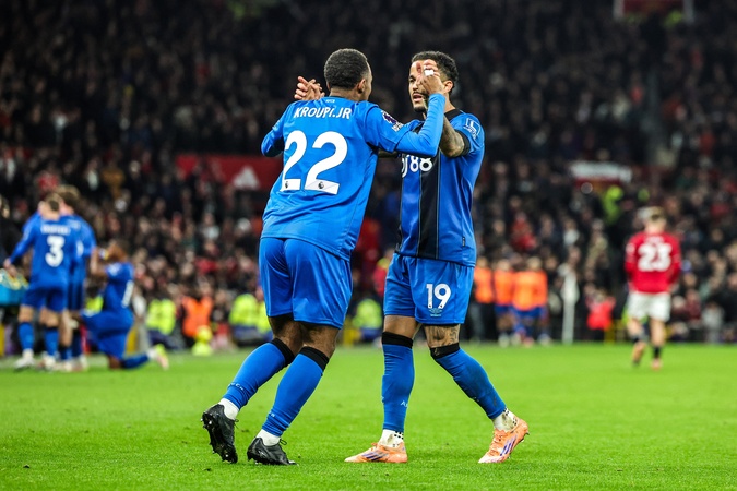 Eli Junior Kroupi of Bournemouth celebrates his goal to make it 4-4 during the Premier League match Manchester United vs Bournemouth at Old Trafford, Manchester, United Kingdom, 15th December 2025, Credit:Mark Cosgrove/News Images / Avalon
