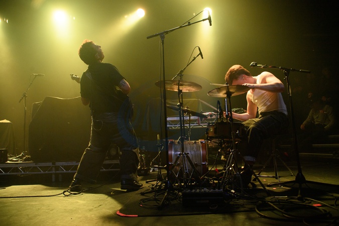 Bassist/vocalist Tom Rhodes and Drummer/vocalist Euan Woodman of english punk duo GANS performs at Koko in London, England, UK on Monday 15 December 2025., Credit:Justin Ng / Avalon