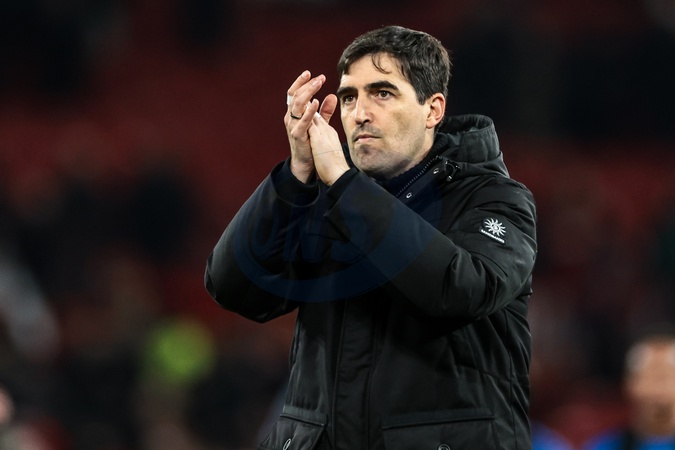 Andoni Iraola manager of Bournemouth applauds the fans after the game during the Premier League match Manchester United vs Bournemouth at Old Trafford, Manchester, United Kingdom, 15th December 2025, Credit:Mark Cosgrove/News Images / Avalon