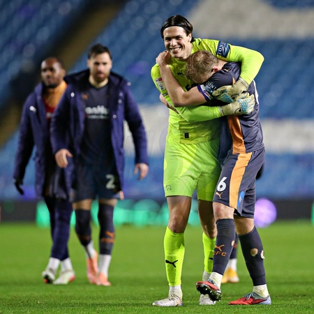 Jacob Widell Zetterstrom of Derby County and Sondre Langas of Derby County after the Sky Bet Championship match Sheffield Wednesday vs Derby County at Hillsborough, Sheffield, United Kingdom, 15th December 2025, Credit:Sam Eaden/News Images / Avalon