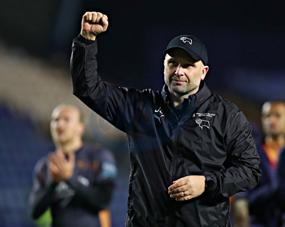 John Eustace, Head coach of Derby County celebrates after the Sky Bet Championship match Sheffield Wednesday vs Derby County at Hillsborough, Sheffield, United Kingdom, 15th December 2025, Credit:Sam Eaden/News Images / Avalon