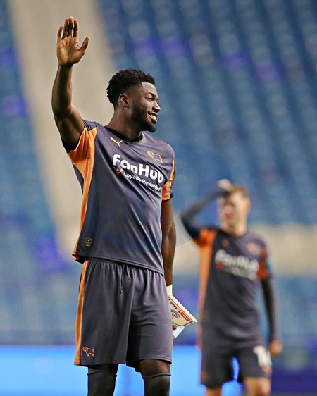Patrick Agyemang of Derby County celebrates with his player of the match award after the Sky Bet Championship match Sheffield Wednesday vs Derby County at Hillsborough, Sheffield, United Kingdom, 15th December 2025, Credit:Sam Eaden/News Images / Avalon