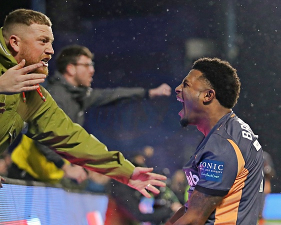 Rhian Brewster of Derby County celebrates Derby's third goal scored by Patrick Agyemang of Derby County during the Sky Bet Championship match Sheffield Wednesday vs Derby County at Hillsborough, Sheffield, United Kingdom, 15th December 2025, Credit:Sam Eaden/News Images / Avalon
