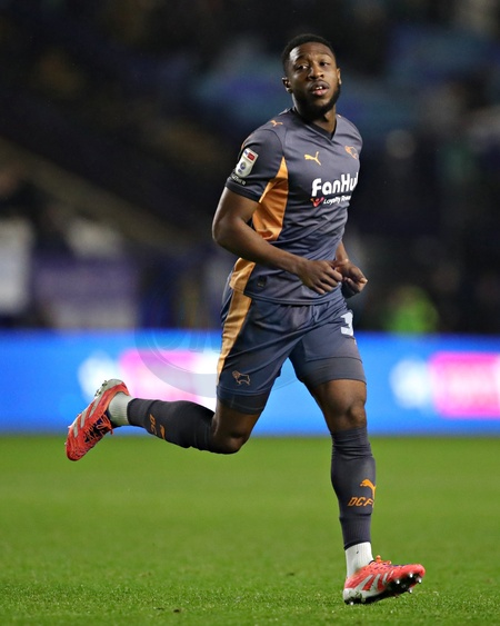 Ebou Adams of Derby County during the Sky Bet Championship match Sheffield Wednesday vs Derby County at Hillsborough, Sheffield, United Kingdom, 15th December 2025, Credit:Sam Eaden/News Images / Avalon