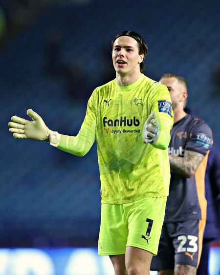 Jacob Widell Zetterstrom of Derby County celebrates after the Sky Bet Championship match Sheffield Wednesday vs Derby County at Hillsborough, Sheffield, United Kingdom, 15th December 2025, Credit:Sam Eaden/News Images / Avalon