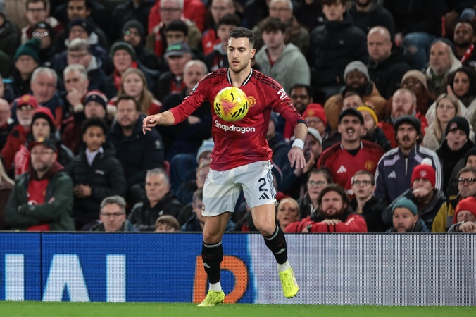 Diogo Dalot of Manchester United controls the ball during the Premier League match Manchester United vs Bournemouth at Old Trafford, Manchester, United Kingdom, 15th December 2025, Credit:Mark Cosgrove/News Images / Avalon