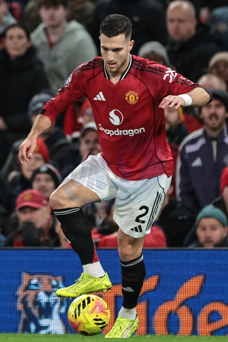 Diogo Dalot of Manchester United with the ball during the Premier League match Manchester United vs Bournemouth at Old Trafford, Manchester, United Kingdom, 15th December 2025, Credit:Mark Cosgrove/News Images / Avalon