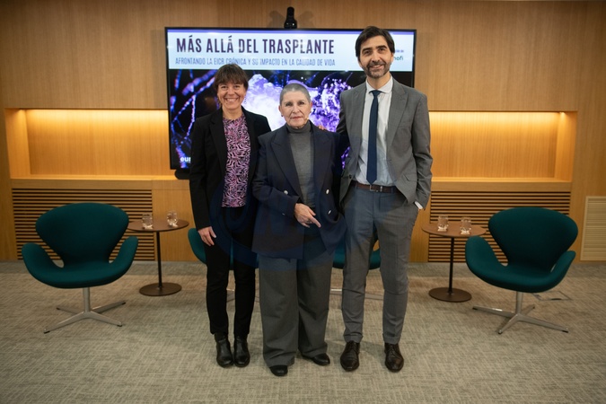 The representative of the Patient Experience Program of the José Carreras Foundation, Marta Fernández, the president of AEAL, Begoña Barragán, and the head of the Pediatric Hemato-Oncology Service at Hospital Universitario La Paz, Antonio Pérez Martínez, during the Sanofi Information Meeting 'Beyond transplantation. Facing chronic eicr and its impact on quality of life', at the Meeting Place, on December 16, 2025, in Madrid (Spain).DECEMBER 16;202512/16/2025, Credit:Fernando Sánchez / Avalon