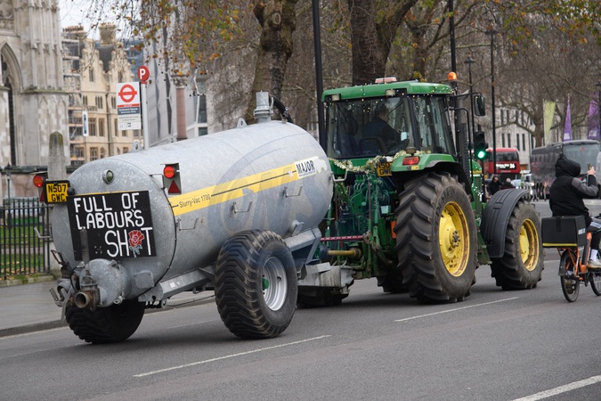 A farmer in a slurry tanker drives past Parliament Square in London, England, UK on Tuesday 16 December, 2025 as part of a protest over changes to inheritance tax for farms., Credit:Justin Ng / Avalon