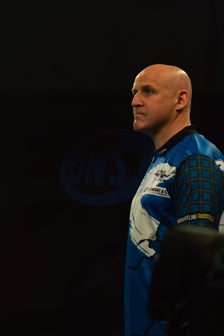 Alan Soutar in action during day five of the 2025/26 Paddy Power World Darts Championship at Alexandra Palace LONDON, ENGLAND on 15th DECEMBER 2025., Credit:Oleksii Ovcharenko / Avalon