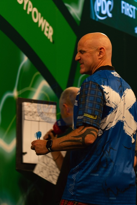 Alan Soutar in action during day five of the 2025/26 Paddy Power World Darts Championship at Alexandra Palace LONDON, ENGLAND on 15th DECEMBER 2025., Credit:Oleksii Ovcharenko / Avalon